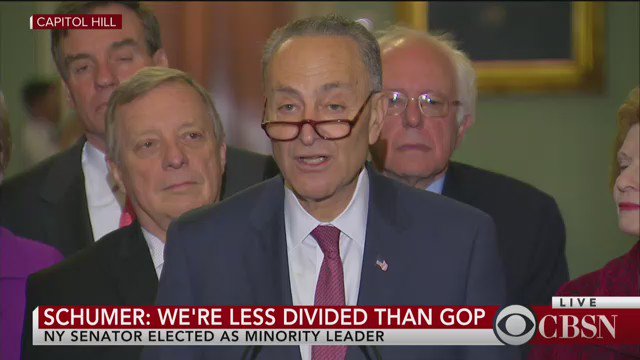 Striking a tone of contrition, Schumer prefaced the leadership announcement by acknowledging the losses in the 2016 election, results the Democrats “can’t ignore.”